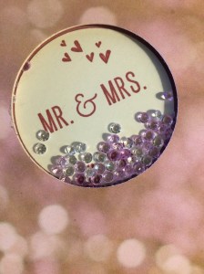 Für den 1. Akzent habe ich mich für ein Schüttelfenster mit einem einfachen Spruch „Mr & Mrs“ aus dem aktuellen Set „Cheers to the year“ entschieden. Das ganze wurde mit kleinen Kristallsteinchen gefüllt.